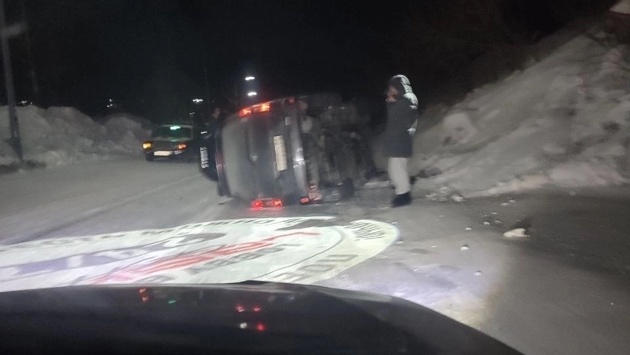 Накануне в Шерегеше автомобиль опрокинулся на бок, о чем сообщил очевидец в соцсетях.