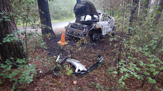 Сообщение от диспетчера пожарной части о том, что в лесном массиве обнаружен сгоревший автомобиль с телами двух человек, поступило в дежурную часть МО МВД России «Алапаевский» в 7.25 утра. «На место происшествия прибыли сначала сотрудники ДПС, а затем и сыщики уголовного розыска. Проведенными мероприятиями местонахождение владелицы транспортного средства было установлено», — подчеркнул начальник пресс-службы регионального ГУ МВД Валерий Горелых.