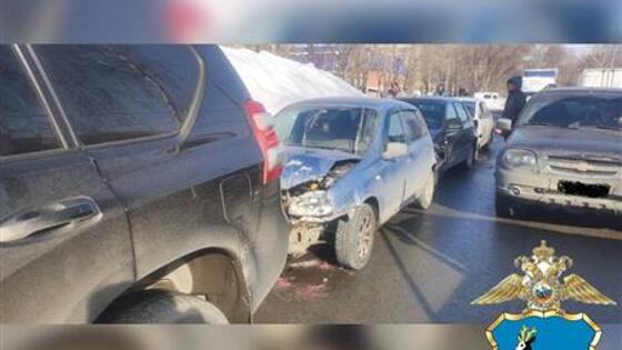 В 10:28 54-летний водитель Chevrolet Cobalt в районе дома №4 по ул. Товарной столкнулся с Lada Granta. Вазовскую легковушку от удара отбросило на попутную Lada Kalina, а ту - на Toyota. В аварии пострадал пассажир Lada Kalina.