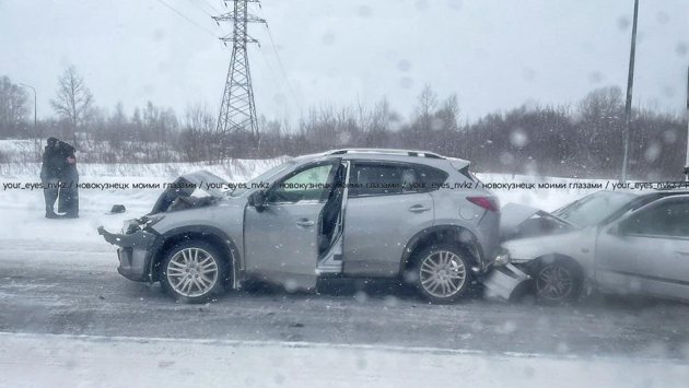Утром в пятницу, 1 марта, на Бызовском шоссе в Новокузнецке около заправки столкнулись два грузовика и две легковушки, сообщают очевидцы.