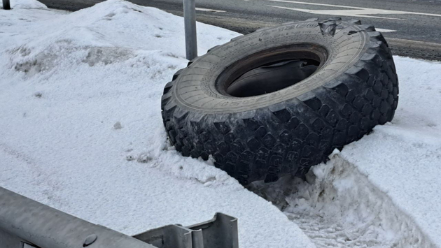 В УГИБДД по Тюменской области заявили, что на 35-м км трассы Тюмень — Ханты-Мансийск человек погиб в результате того, что часть колеса автомобиля КамАЗ влетела в форточку эвакуатора, который двигался по соседней полосе.