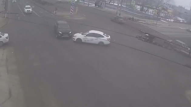 На кадрах заметно, что «Лада» с отметками такси начала поворот налево, не пропустив другого участника движения, и в результате спровоцировала ДТП.