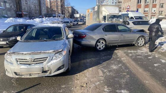 Пять автомобилей столкнулись в Ижевске на улице Холмогорова