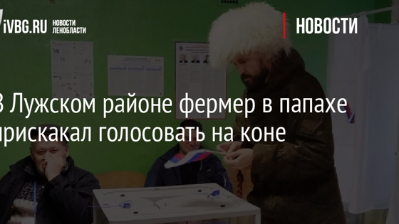 В Лужском районе фермер в папахе прискакал голосовать на коне