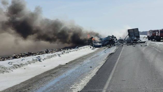 Как писала "РГ", сегодня около 13.00 на 565-м километре автодороги Тюмень-Омск произошло столкновение двух большегрузов и легкового автомобиля. После столкновения транспортные средства загорелись.