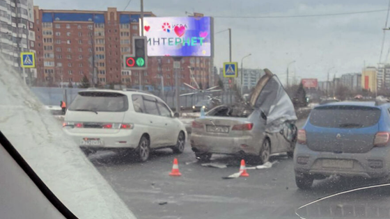 В Красноярске у седана Lexus оторвалась крыша в момент его столкновения с эвакуатором. Об этом сообщает Telegram-канал «Красноярск №1».