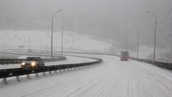 Наблюдается гололёд и на трассе от Смоляниново до Раздольного и Уссурийска. По состоянию на 8:40 там ещё шёл небольшой снег.