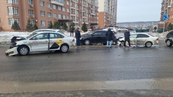 На фото с места происшествия заметно, что в результате две легковушки, на одной из которых есть наклейки такси, получили серьезный урон – их передние части оказались разбиты.