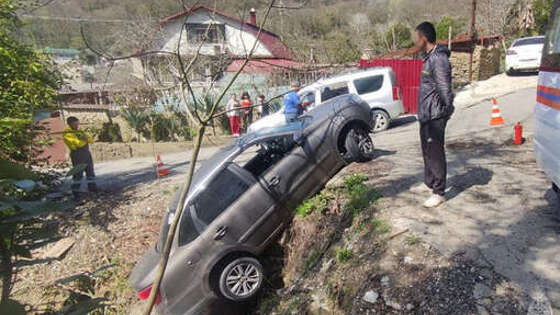 В Сочи Lada Granta с туристами заглохла и зависла на крутом склоне
