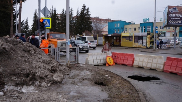 На главной улице Бердска провалилась канализация утром 2 апреля