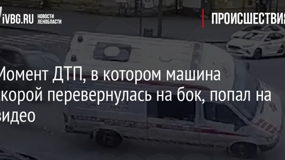 Момент ДТП, в котором машина скорой перевернулась на бок, попал на видео
