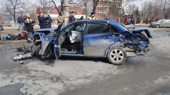 В 13:25 38-летний водитель Nissan Qashqai напротив дома № 12 по пр. Победы выехал на встречную полосу и столкнулся с Chevrolet Lacetti под управлением 56-летнего мужчины. От удара Chevrolet отбросило ехавший сзади Renault Logan. При этом Nissan врезался в другой Renault Logan и Lifan.В аварии пострадал водитель Chevrolet Lacetti. Его госпитализировали.