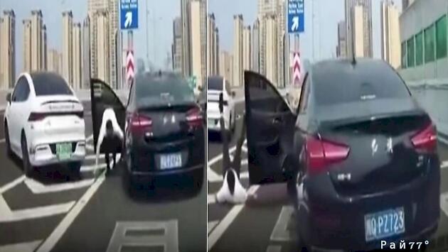 Водитель чёрного седана не разъехался с дорожным ограждением в городе Хайкоу (провинция Хайнань, КНР) и, находясь под впечатлением, упустил разбитую легковушку.