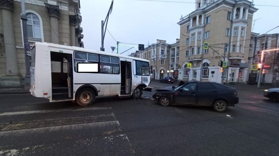 По предварительной информации, в 04.45 ПАЗ под управлением 35-летнего водителя, выполняя левый поворот с улицы Ленина на улицу Гоголя, врезался во встречную легковушку.