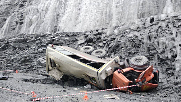 Вахтовый автобус с пассажирами упал с высоты десяти метров на промышленной площадке в Северо-Енисейском районе Красноярского края. Два человека погибли, еще несколько работников карьера получили травмы.