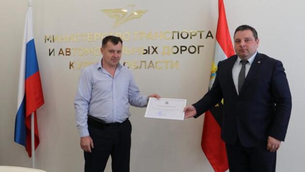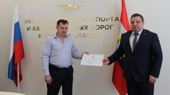 Награду получил водитель Национальной транспортной ассоциации Сергей Горковенко. 27 марта старый ЛиАЗ протаранил несколько машин, вылетел на встречную полосу и врезался в автобус «Волгабас», когда водитель высаживал пассажиров. Водитель "Волгабаса" <a href="https://kursk-izvestia.ru/news/210911/">Сергей Горковец</a>, заметив приближающуюся угрозу, успел предупредить свохи пассажиров, которые быстро покинули салон. Среди них пострадавших нет. Сергей получил благодарность от министр транспорта и Национальной транспортной ассоциации за профессионализм и мужество, проявленные в экстремальной ситуации.