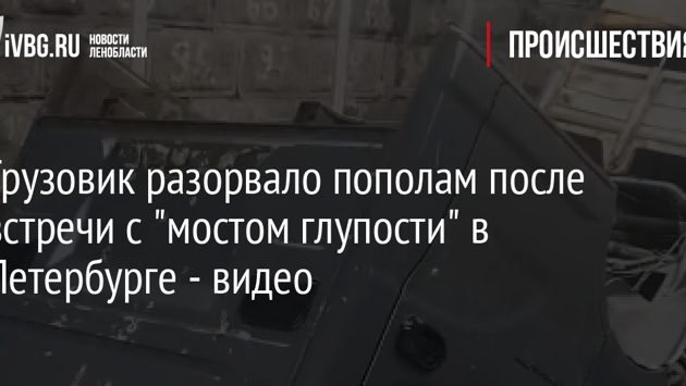 Грузовик разорвало пополам после встречи с "мостом глупости" в Петербурге - видео