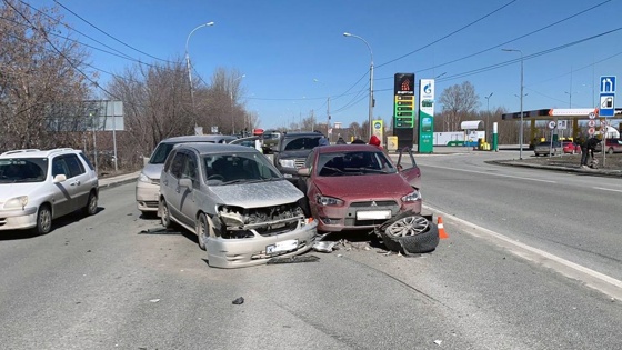 16 апреля на Советском шоссе в Кировском районе Новосибирска произошло крупное дорожно-транспортное происшествие с участием пяти автомобилей.