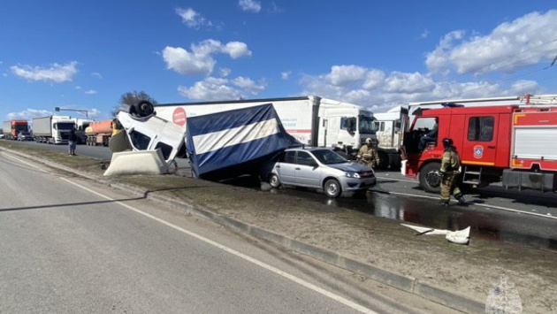 В Самарской области на трассе во время массового ДТП перевернулась "Газель"