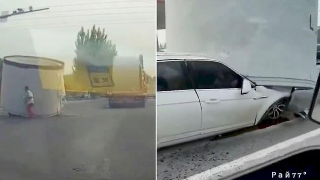 Шокирующий инцидент, произошедший на оживлённой китайской автомагистрали, был запечатлён другим участником дорожного движения 22 апреля.
