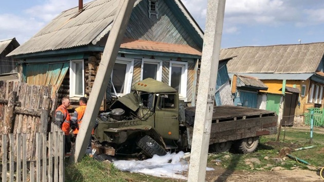 На Урале груженый баллонами с газом грузовик врезался в жилой дом