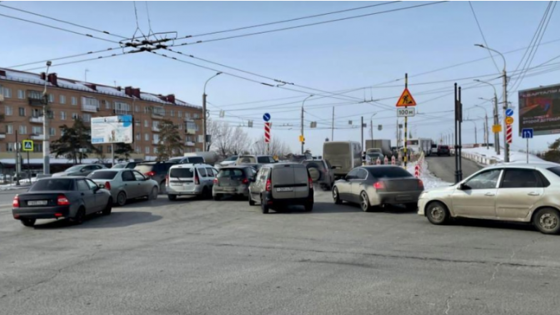 Из-за ДТП на Ленинградском мосту в Омске образовалась огромная пробка