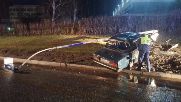 В центре Новоуральска «семерка» врезалась в столб и загорелась: водитель погиб на месте