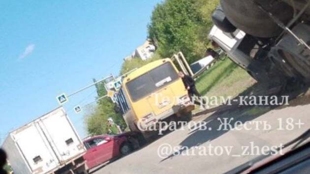 Сегодня, 30апреля, вЛенинском районе Саратова произошло массовое ДТП сучастием пяти автомобилей. Фото сместа аварии появились вTelegram-канале «Саратов. Жесть 18+».