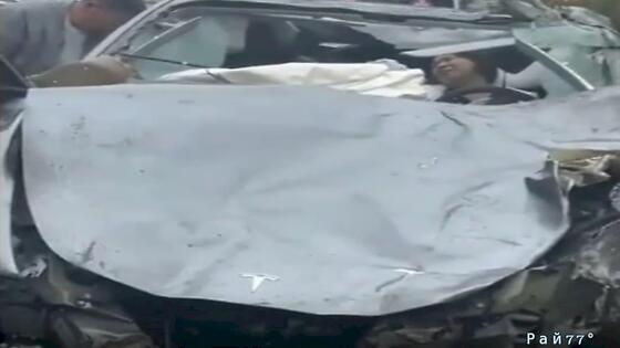 Китаянка не справилась с управлением Теслы и несколько раз перевернулась в её салоне