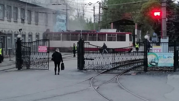В Челябинске трамвай сошел с рельсов и врезался в стену