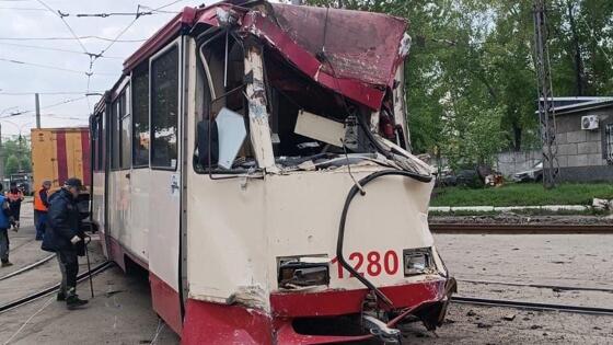 В Челябинске старый трамвай снёс крыльцо и врезался в другой вагон