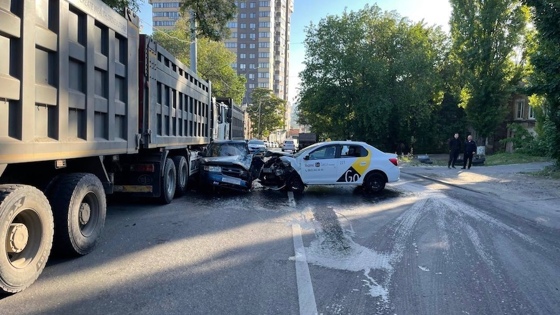 В Ростове-на-Дону произошла массовая авария с КамАЗом и такси