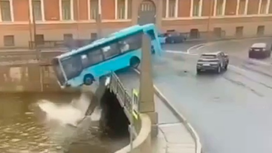 Момент падения пассажирского автобуса в Мойку попал на камеру