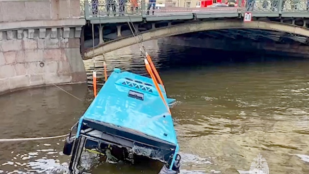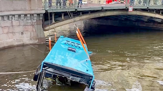 Появилось видео с камеры видеонаблюдения с моментом аварии с автобусом, упавшим в реку Мойку.