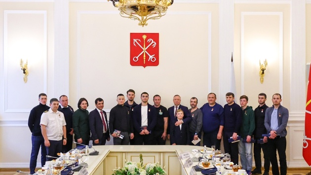 Губернатор Александр Беглов вручил такие знаки Филиппу Авдееву, Ерхану Аханову, Игорю Беляеву, Идрису Гаджиеву, Магомеду Гасанову, Шахбану Джабраилову, Линару Ибатуллину, Яну Карасеву, Рашиду Насрулаеву, Гаджи Мурату Садуллаеву, Владимиру Скоробогатько, Дмитрию Титомиру, Олегу Титунину, Илье Филлипову и Илхому Эргашеву. Им также подарили на память часы с гербом Санкт‑Петербурга.
