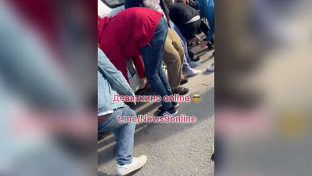 Опубликовано видео, как люди поднимают автобус для спасения человека в Девяткино