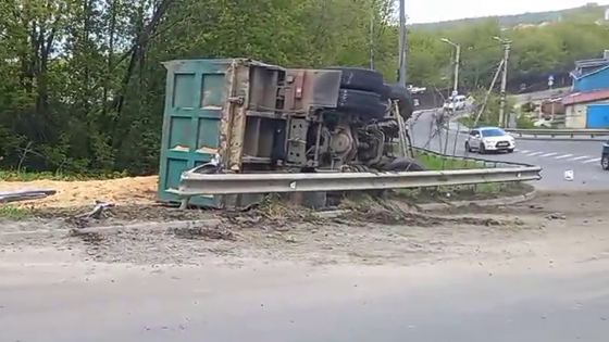 Грузовик перевернулся в Нижнем Новгороде из-за лопнувшего колеса