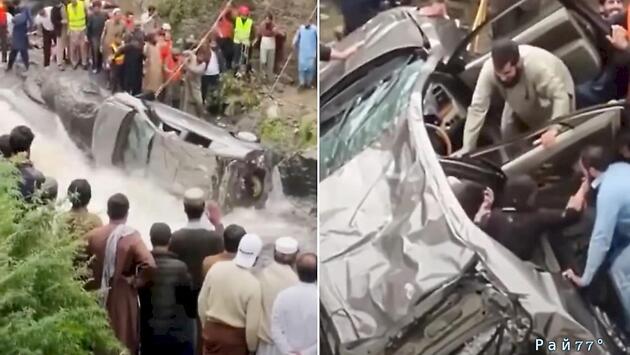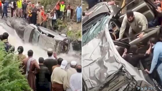 На недавно опубликованном в Сети видеосюжете, снятом в прошлом году в районе города Дир (провинция Хайбер-Пахтунхва, Пакистан), запечатлены кадры спасательной операции по подъёму легковушки из горной реки.