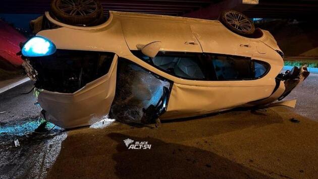Водитель Porsche снес светофор и опрокинулся на дорогу в Новосибирске