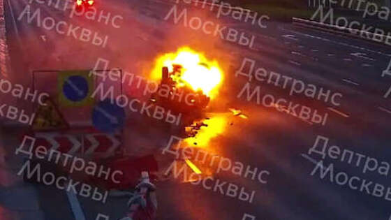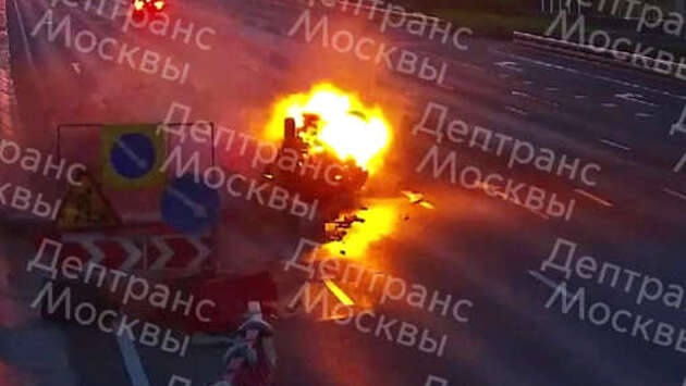 Момент возгорания такси после ДТП на МКАД попал на видео
