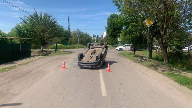 В Курске в опрокинувшемся автомобиле пострадала женщина
