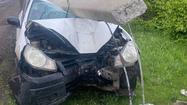 Накануне вечером в кузбасском городе пьяный "бесправник" протаранил столб, в результате чего бетонная опора ЛЭП рухнула на машину.