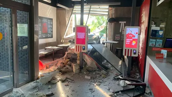 Как отмечается, мужчина 1976 года рождения управлял автомобилем Renault Logan. Пострадавших нет, заявили в УГИБДД. На обнародованных снимках с места происшествия видно, что часть кузова автомобиля оказалась в помещении, транспортное средство остановилось около терминала оплаты.