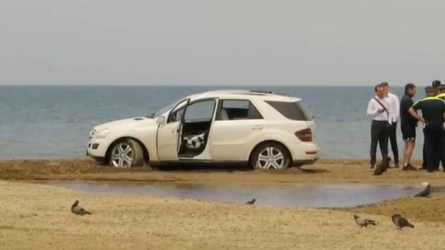 На размещенных в сети кадрах автомобиль стоит в песке, а неподалеку сотрудники полиции общаются с несколькими мужчинами, которые, предположительно, вышли из транспортного средства.