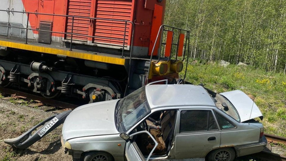 В Свердловской области на железнодорожном переезде тепловоз столкнулся с легковым автомобилем.