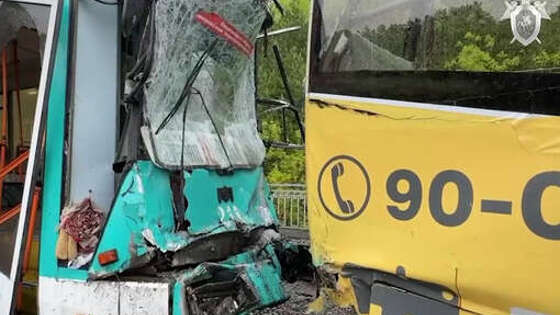 В Кемерове пассажиры трамвая, который врезался в другой, до столкновения выпадали на ходу из салона. Такой момент попал на видео, которое распространилось в соцсетях. На кадрах видно, что трамвай летит по рельсам на большой скорости из-за отказавших тормозов, а в это время из открытых дверей выпадают пассажиры. Люди упали на проезжую часть, по которой следовал плотный поток машин. Дорожный инцидент случился утром 6 июня на Кузнецком мосту. Трамвай врезался в другой на полной скорости. По данным Минздрава, в аварии пострадали 90 человек. Одного пострадавшего врачи спасти не смогли. Как сообщили в оперативных службах, причинами столкновения двух трамваев в Кемерове могли стать отказ тормозов или человеческий фактор. Следственный комитет возбудил уголовное дело по признакам статьи "Оказание услуг, не отвечающих требованиям безопасности жизни или здоровья". Кемеровская электротранспортная компания пообещала возместить ущерб пострадавшим в ДТП с трамваями по страховке. После инцидента стало известно, что трамвай с отказавшими тормозами проходил техобслуживание за три дня до ДТП.