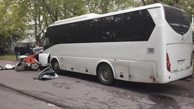 Судя по фото, автомобиль Volkswagen Polo каршерингового сервиса Делимобиль съехал со своей полосы и на большой скорости врезался в стоящий у обочины автобус Higer.