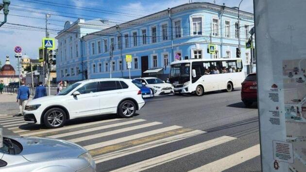 ДТП произошло на улице Нииколодворянской на перекрёстке у рязанского цирка. Легковушка столкнулась с маршруткой на пешеходном переходе.