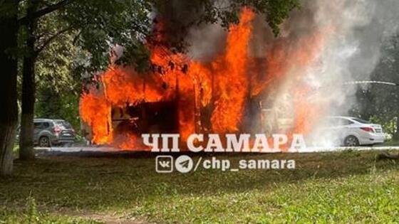 В Самаре сгорел автобус на пр. Кирова