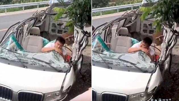 Со слов автора видео, автомобилист не получил никаких травм и долгое время пребывал в растерянном состоянии.